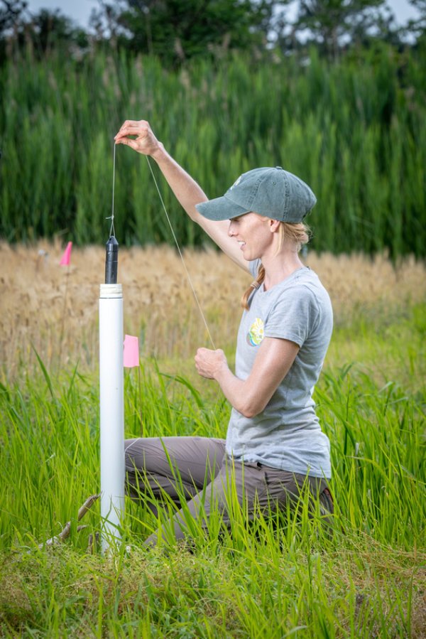 Kate Tully in the field researching saltwater intrusion on the Delmarva Peninsula. (Photo credit: Edwin Remsberg)