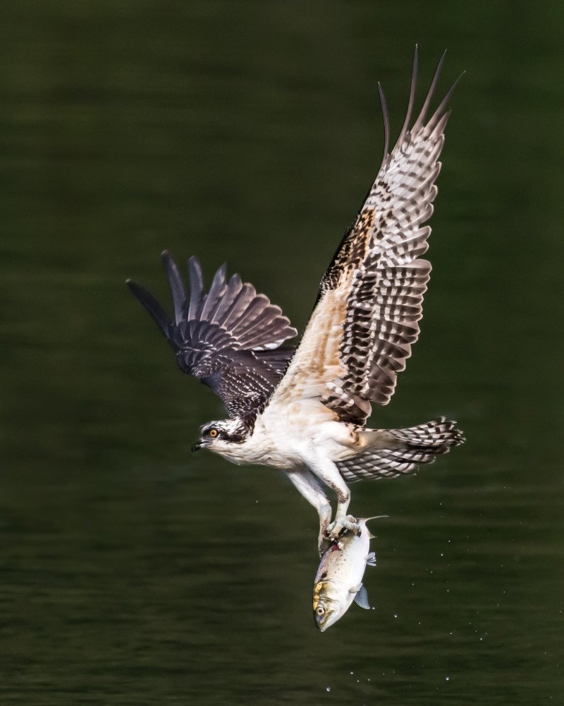 An osprey in flight with a freshly caught menhaden in its talons. (Photo by Abeselom Zerit, Getty Images)