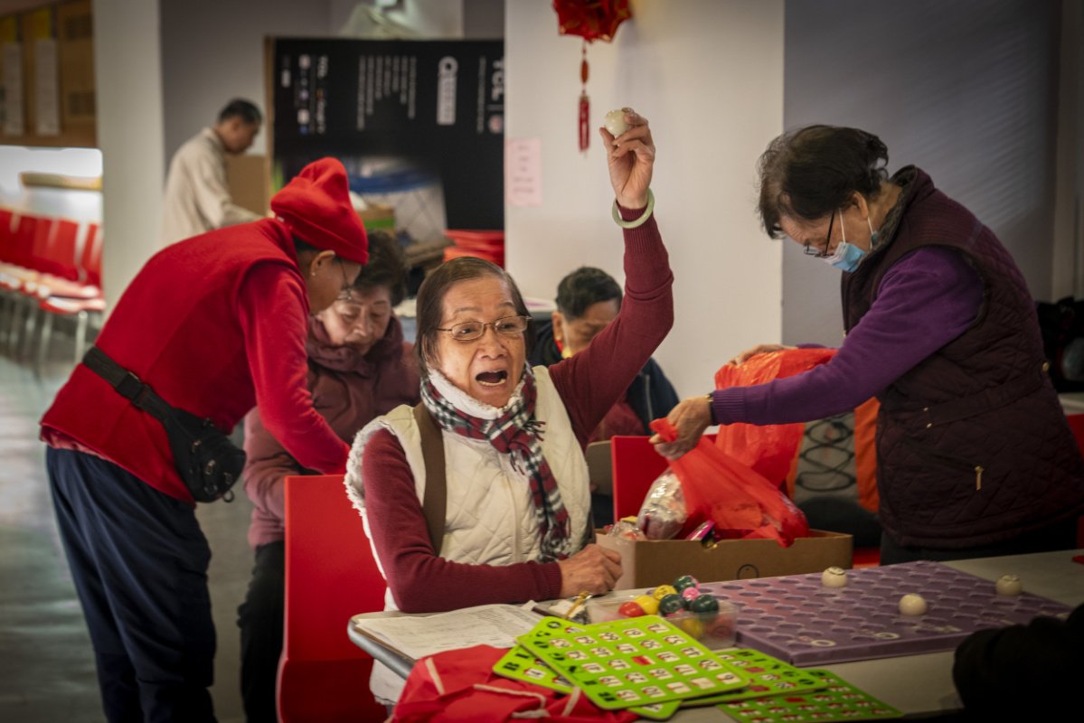 Siu Kuen Tam, 86, leads the daily bingo game.